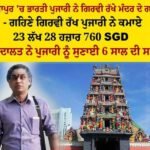 एक हैरानीजनक मामला सामने आया सिंगापुर में एक भारतीय पुजारी ने जिस मंदिर में वह सेवा करता था उसी मंदिर के भगवान के गहने ही गिरवी रख दिये इसका मतलब अब भगवान की सेवा करने वाला पुजारी उस पर भी विश्वास नहीं रहा जिसने भगवान को पहनाई जाने वाले गहने ही मंदिर से उठाकर गिरवी रख दिये मंदिर के भगवान के गहनो के बदले में उसने 23 लाख 28 हज़ार 760 SGD लिए जब यह मामला सिंगापुर सरकार को पता चला तो उसे वहां की अदालत में पेश किया गया तो अदालत ने पूजारी को 6 साल की सजा सुनाई।
